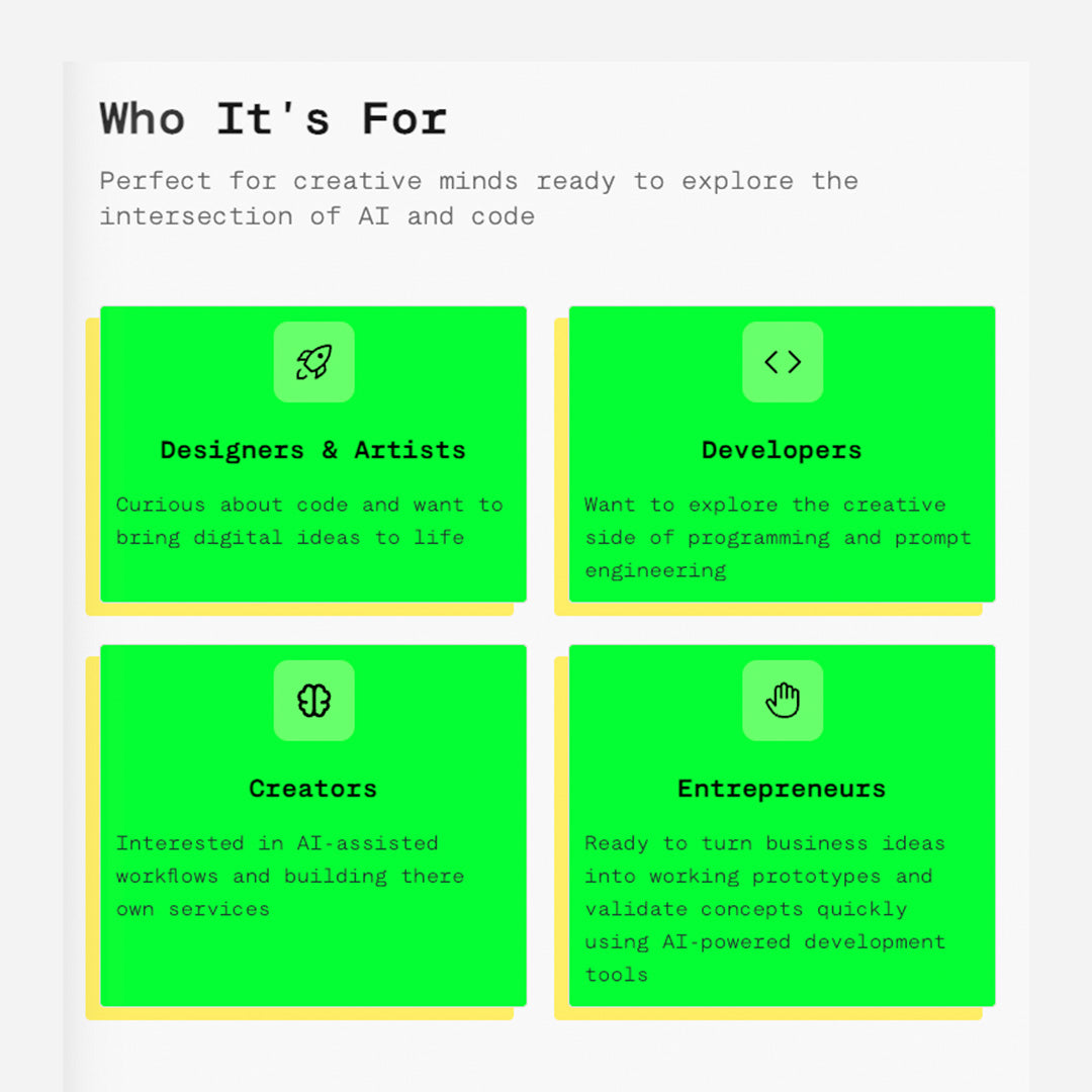 Learn, experiment, and build together using AI-assisted coding.